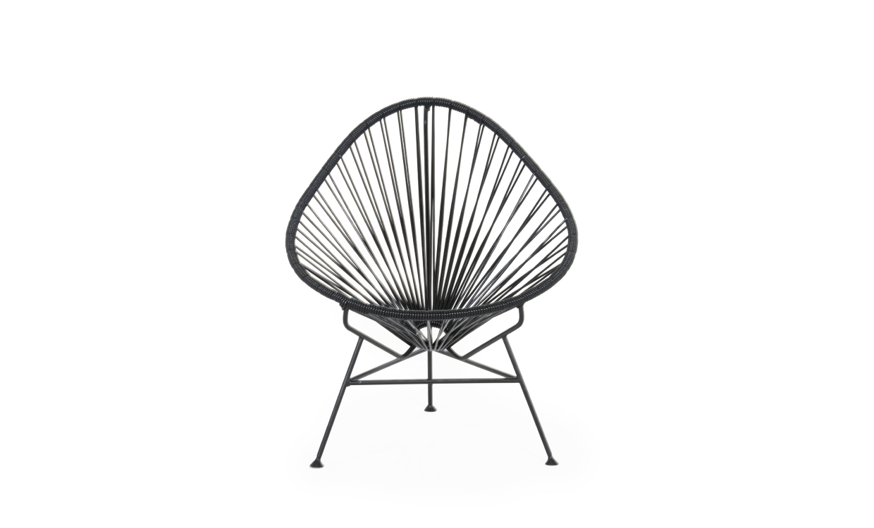 Acapulcostolen ”The Original” är en retroikon från 50-talet. Här presenterar vi modellen i en ny och modern tappning i barnmodell. Stolen är tillverkad för hand i Mexico, som sig bör med den här typen av stol. Modellen finns i flera utföranden och olika färgkombinationer. En otroligt bekväm stol/fåtölj som går lika bra att placera inom- som utomhus. På 50-talet när stolen såg dagens ljus blev den direkt uppmärksammad för sin kreativa utformning och design. Stolen är tillverkad i svart pulverlackerad, galvaniserat stål. Trådarna är bundna för hand och gjorda i UV-beständig PVC.OBS: den här varianten är endast till för barn.