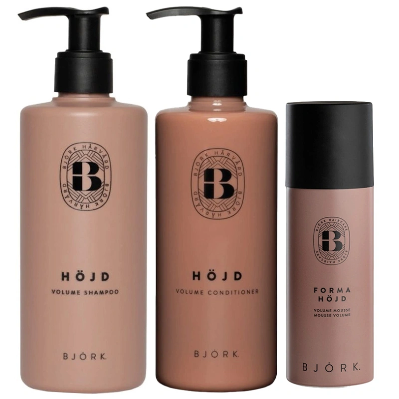 Björk Volym Trio är en samling av tre volymgivande hårprodukter designade för tunt och fint hår.