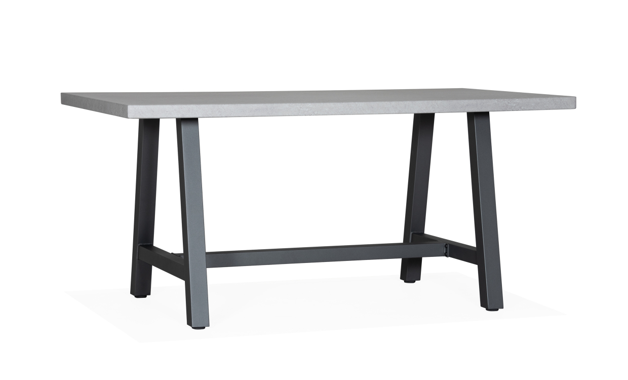 BJÖRKVIK Trädgårdsbord har en stilren grå bordskiva som ger en känsla av betong, vilket skapar en modern och industriell look. Det svarta underredet ger en snygg kontrast och bidrar till bordets stabilitet.