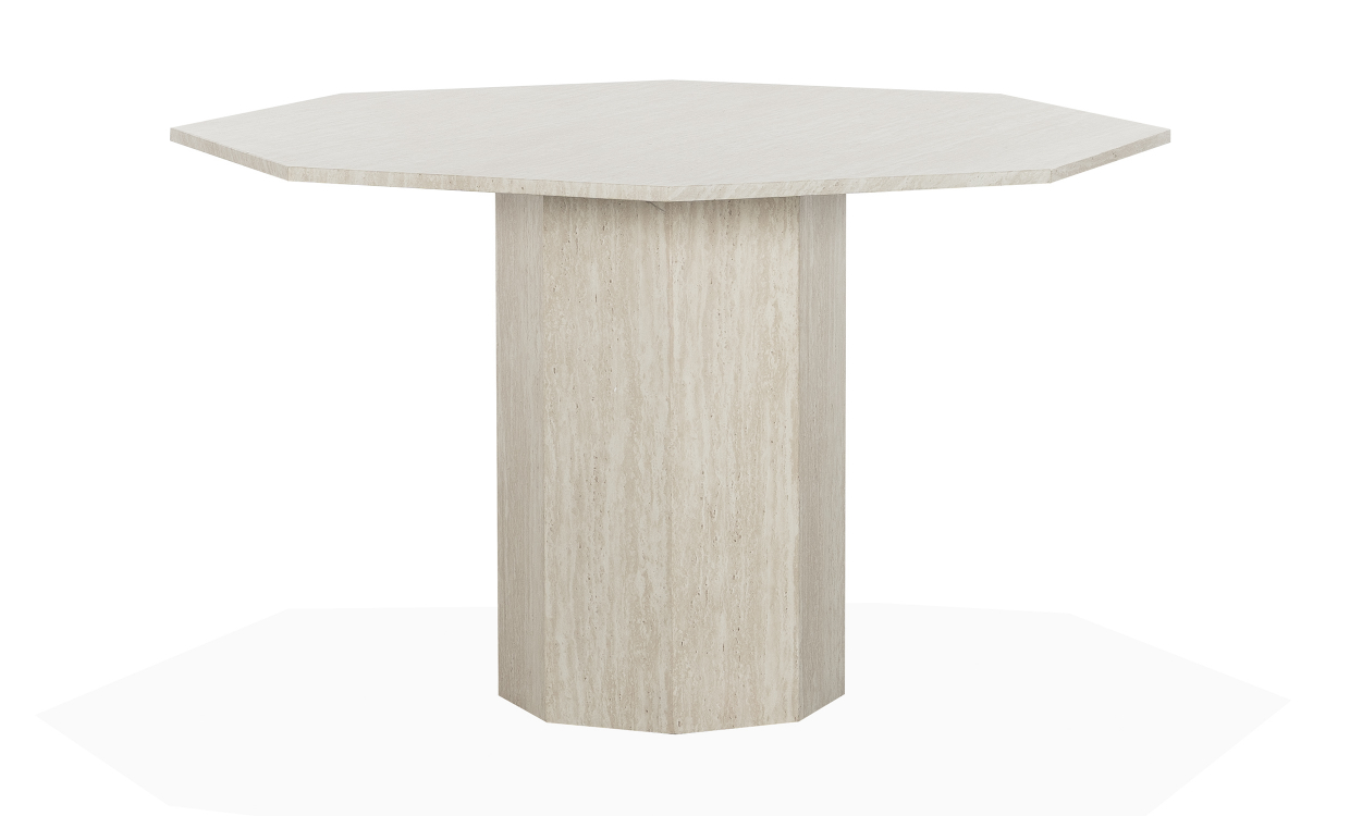 Catania är ett vackert matbord som utstrålar en modern look. Bordet är tillverkat av MDF och har en folierad travertinliknande yta. Med dess vackra form och genomtänkta detaljer blir matbordet en blickfångande möbel, perfekt för att samla familj eller vänner runt om. Design & egenskaperVackert matbord med genomtänkta detaljer.Diameter på bordsskiva från rak kant till rak kant är 120 cm.Diameter på bordsskiva från spets till spets är 130 cm. Material & skötselTillverkad i MDF med en yta med travertinliknande tryck.Har en slät, lackerad finish.Bordet är känsligt mot värme och fukt. Använd alltid underlägg för glas och dylikt. Torka av med fuktad trasa. Använd inte starka rengöringsprodukter. Leverans & förpackningLevereras omonterat.Antal förpackningar: 2 stFörpackningsmått: 132x132x8 cm / 49x77x49 cmVikt: 23 kg / 31 kg