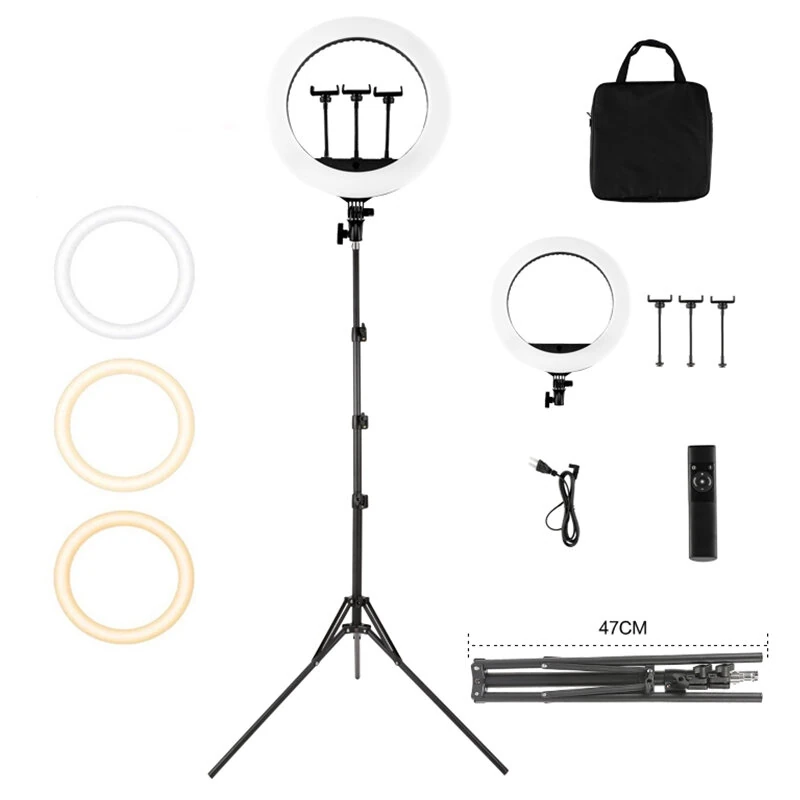 HQ18 LED Ring Light med stativ 55W 3000K-6000K 3 ljusfärger för YouTube TikTok livestreaming vlogg skönhet selfie stick