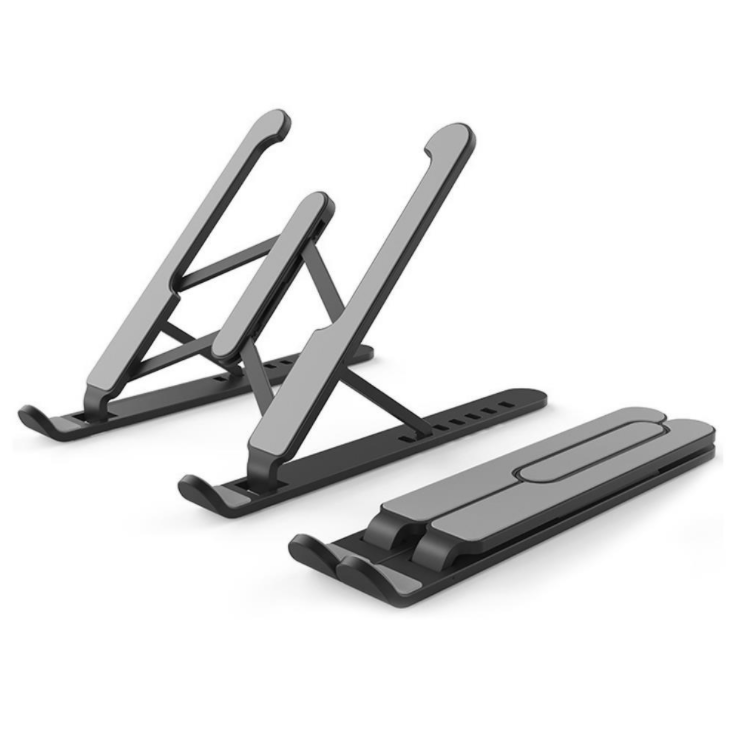 Vår justerbara ställning är inte bara funktionell utan också stilren. Den svarta färgen gör att den passar in i alla miljöer, oavsett om det är hemma, på kontoret eller på caféet. Med fokus på både design och funktionalitet är detta en investering i din hälsa och produktivitet.