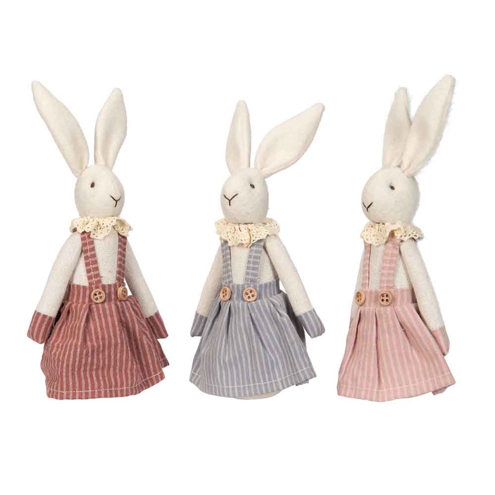Fina kaniner som påskdekoration som ger en mysig atmosfär hemma. Vi säljer dessa som set om 3 st olika dekorationer stående.
