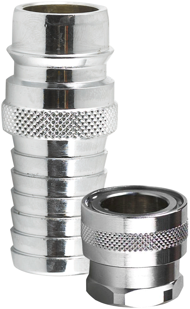Det är ett kopplingsset som inkluderar ett koblingshus och en koblingsnippel med slangespids, designat för att passa 3/4″ slangar.