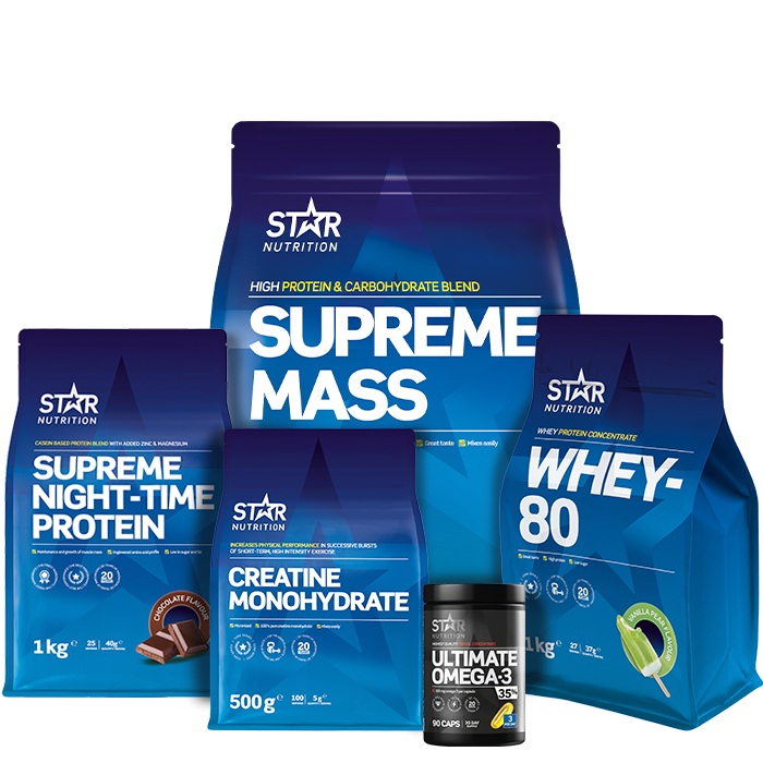 Viktökningspaketet innehåller en kombination av produkter som är sammansatt specifikt för dig som har svårt att lägga på dig muskelmassa och gå upp i vikt!